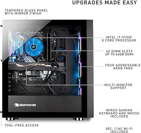 iBUYPOWER Gaming PC Computer Desktop Element 9260 (Intel Core i7-9700F 3.0Ghz, NVIDIA GeForce GTX 1660 Ti 6GB, 16GB DDR4, 240GB SSD, 1TB HDD, Wi-Fi & Windows 10 Home) Black